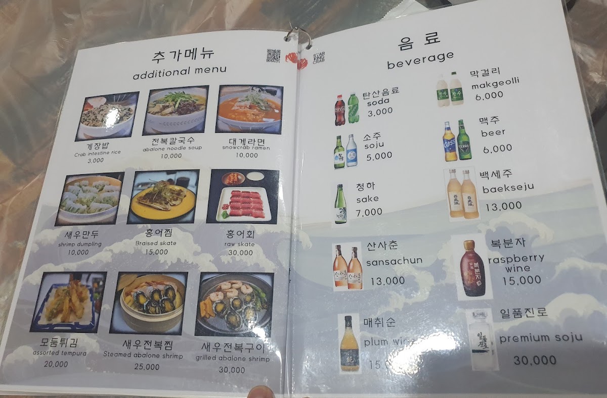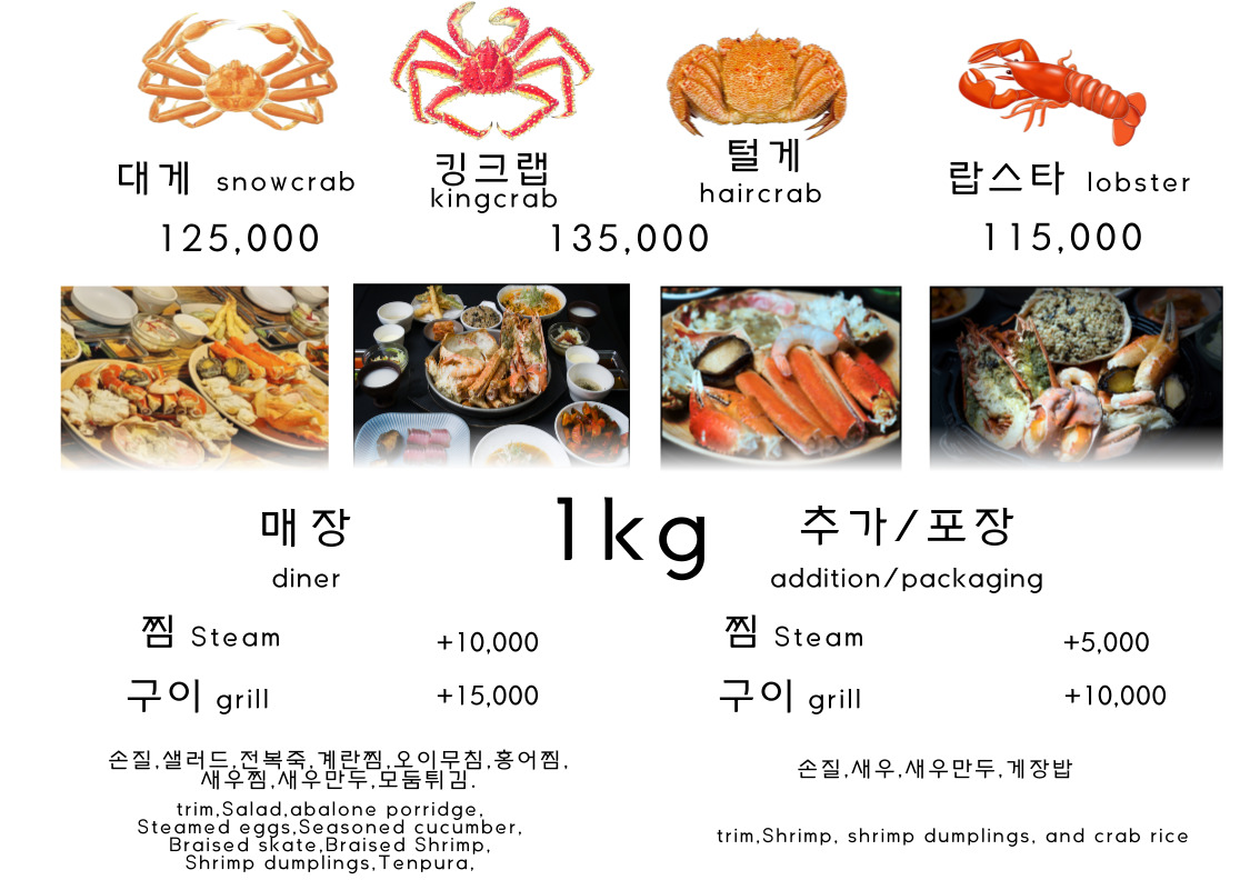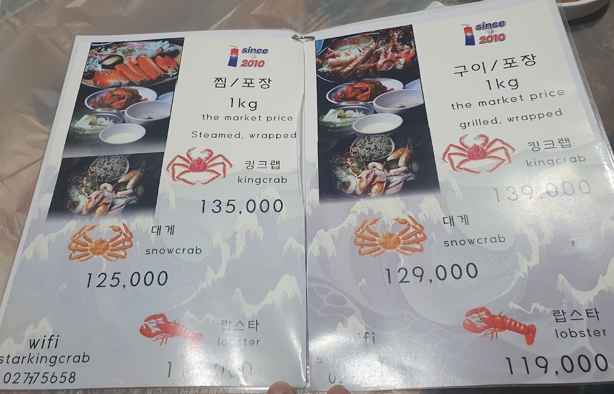 Star King Crab offers a seafood experience that truly elevates the rich flavors of the ocean, with a menu highlighting premium crabs and shellfish. The standout dish is the 킹크랩 찜, a steamed king crab that combines freshness and tenderness, delivering a satisfying, meaty texture. For a comforting, flavorful bowl, the 대게라면 is a perfect choice, blending succulent crab with savory noodles in a delicious broth. Another must-try is the Snowcrab, known for its sweet and delicate flavor that melts in your mouth. If you're in the mood for something grilled, the Grilled Abalone offers a smoky and tender delight, showcasing the natural sweetness of the abalone. Finally, the 킹크랩 버터구이 provides an indulgent twist on king crab with its rich, buttery glaze, making for a truly luxurious dish. Each of these dishes highlights the restaurant’s commitment to providing high-quality, fresh seafood with bold, savory flavors. Whether you prefer steamed, grilled, or in a soup, Star King Crab offers an unforgettable seafood experience that satisfies every craving.